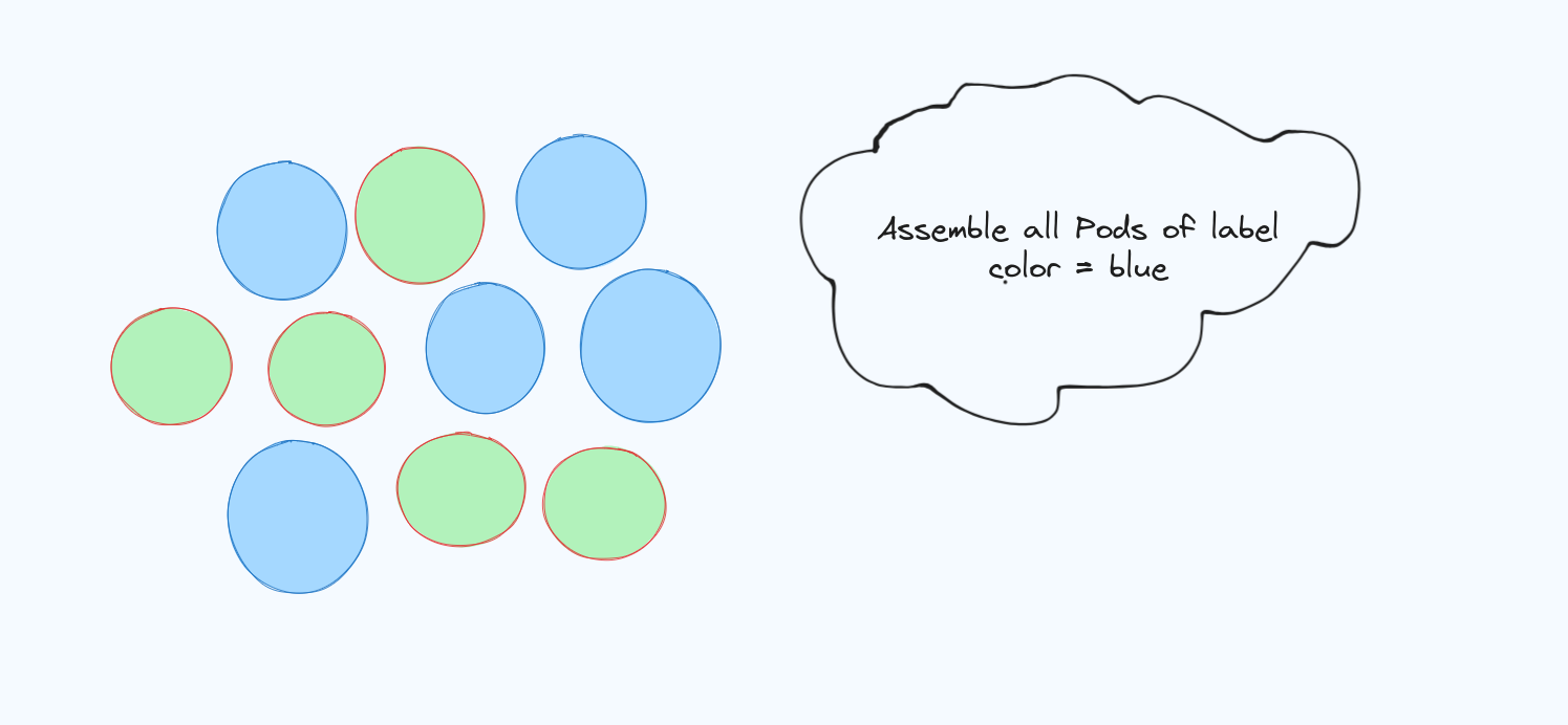 Zum Beispiel:language: Go,specie: human,favSport: Soccer,color: blue– das sind Beispiele für Labels. Selektoren sind einfach eine Möglichkeit, alle Pods mit bestimmten Labels auszuwählen. Ein Pod kann mehrere Labels zugewiesen bekommen.