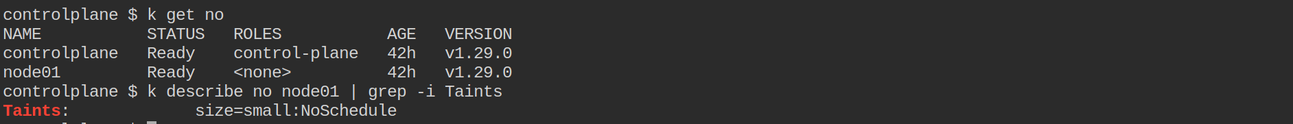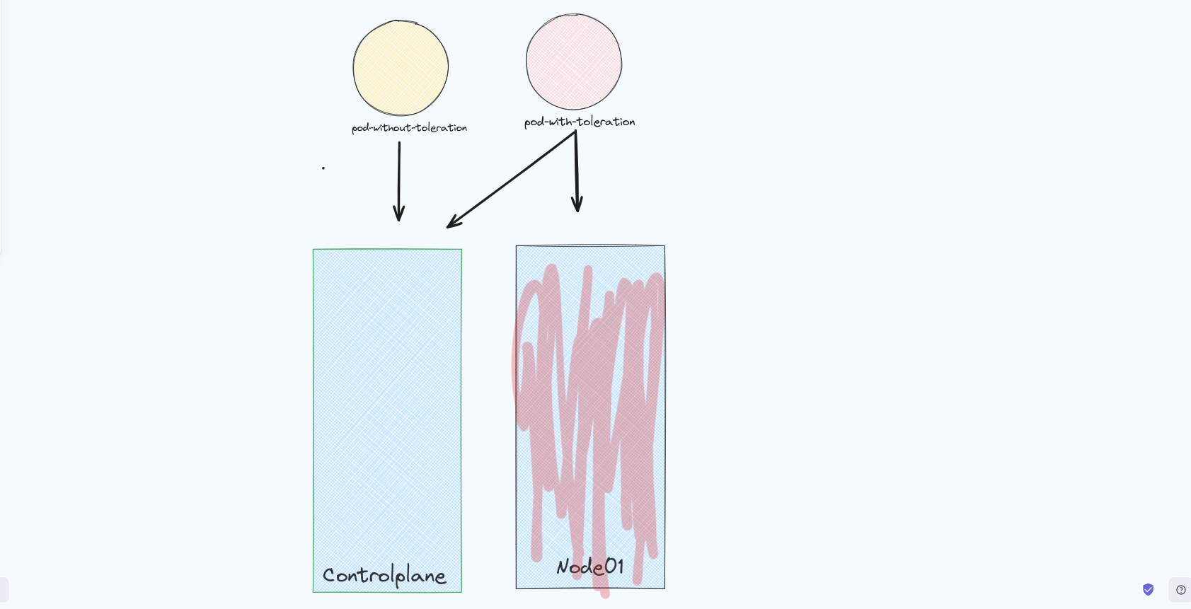 Es ist wichtig zu beachten, dass der Pod mit einer Toleration sowohl auf dem controlplane als auch auf node01 geplant werden kann. Der Pod ohne Toleration kann jedoch nur auf dem controlplane geplant werden. Daher bieten Taints und Tolerations keine Garantie dafür, dass ein bestimmter Pod auf einem bestimmten Node geplant wird.