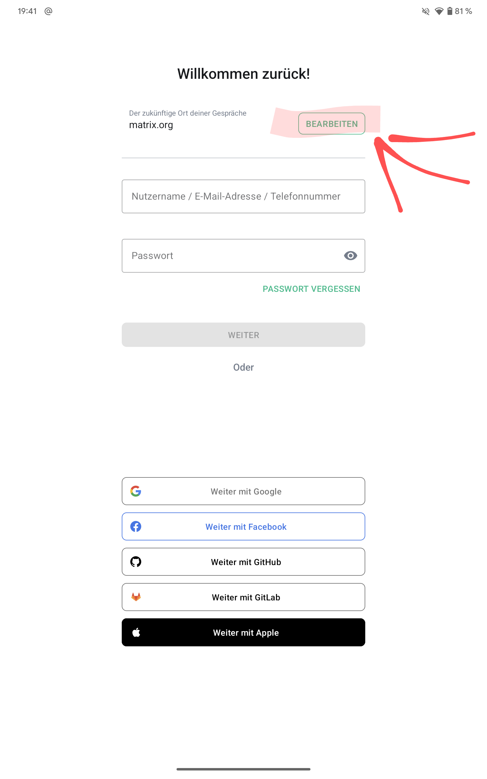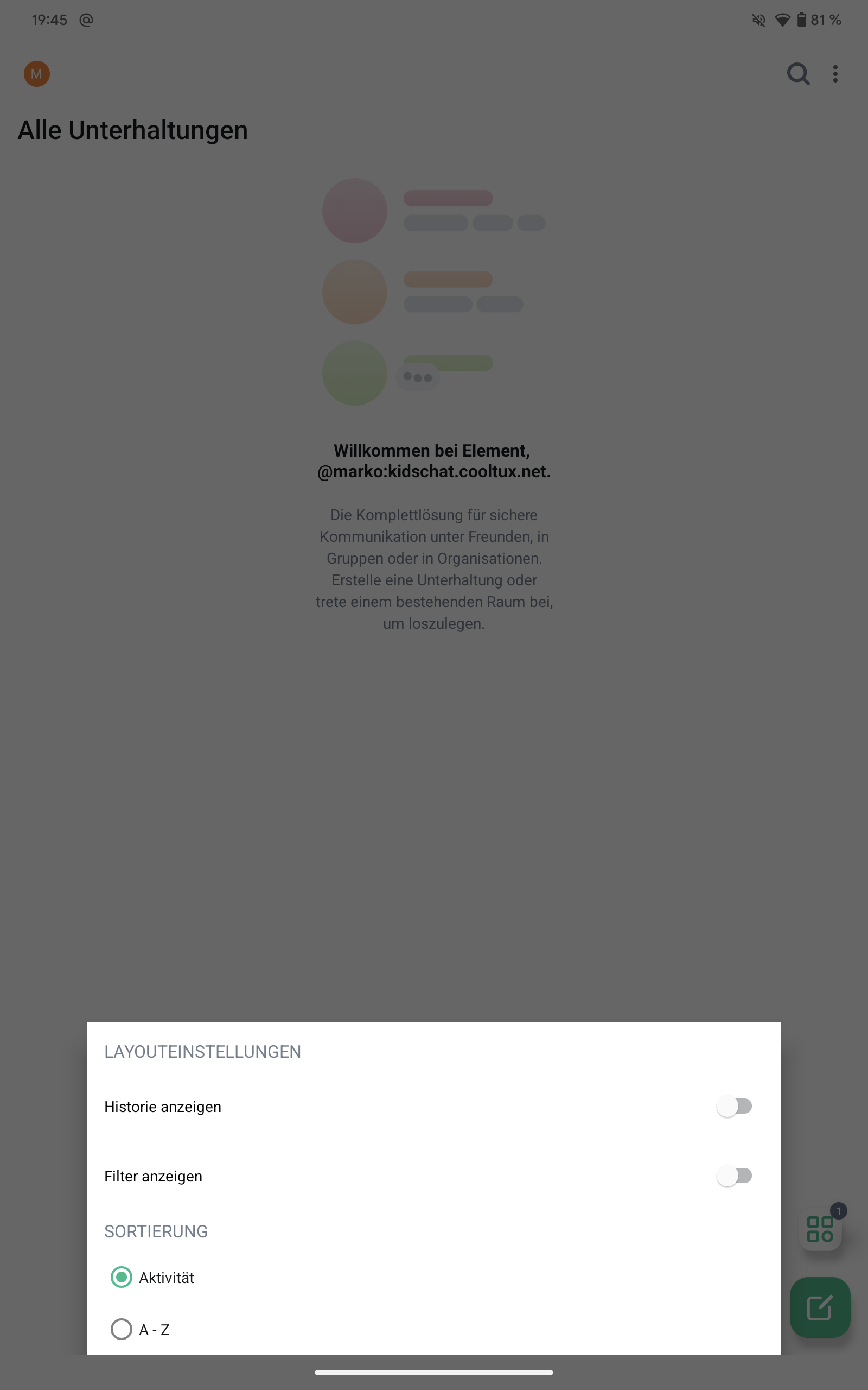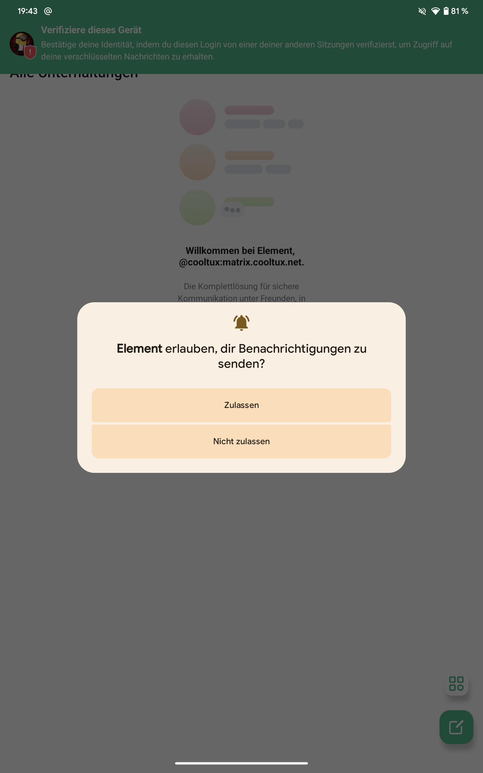 Ich habe die Einrichtung der Element App mal an Hand von Screenshots dokumentiert.