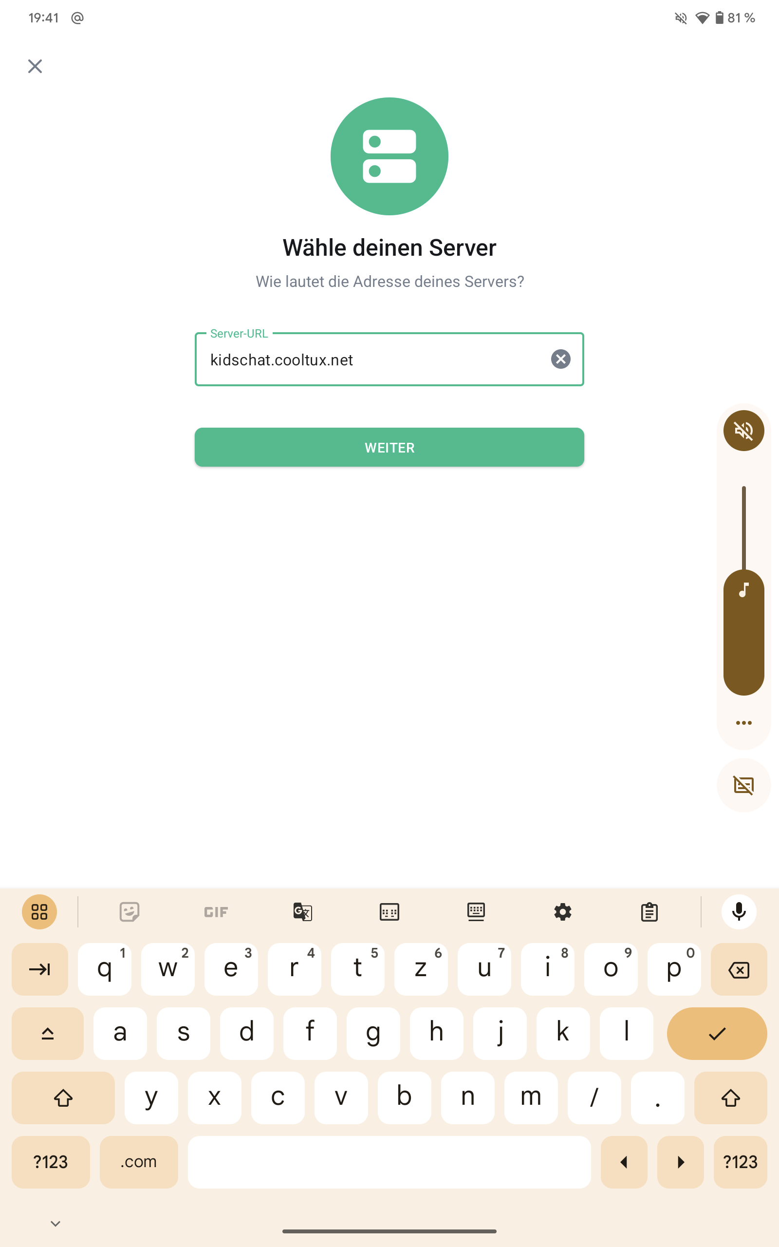 Tragt bitte den Kidschat Server hier als Ort zum Kommunizieren ein.